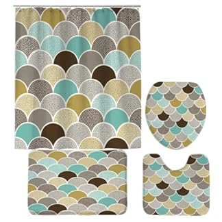 🐡Kleine Größe: Wasserdichter Duschvorhang: 180 x 180 cm, Badematte: 45 x 75 cm, U-förmiger Teppich: 37,5 x 45 cm, Toilettensitzbezug: 35 x 45 cm.