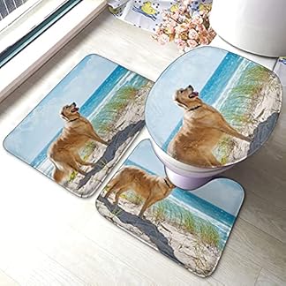 SHEYZYLTD Badematte + Konturmatte + Toilettendeckelbezug Golden Retriever 3 Stück Badematte Set, mit rutschfester Klebeunterseite
