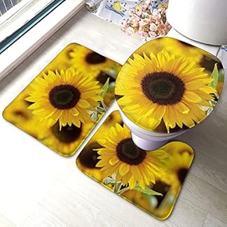 UBINYSS Badematte + Konturmatte + Toilettendeckelbezug, schöne Sonnenblumen 3 Stück Badematte Set, mit rutschfester Klebeunterseite