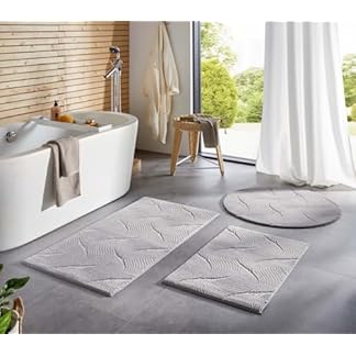 €13,79Produkt kaufenTaracarpet Badematte Homestyle rutschfest waschbar Badezimmerteppich Bad-Vorleger, WC Deko, Duschvorleger für Dusche und Badewannen sehr weich und als Set kombinierbar Grau Blätter 050×080 cm