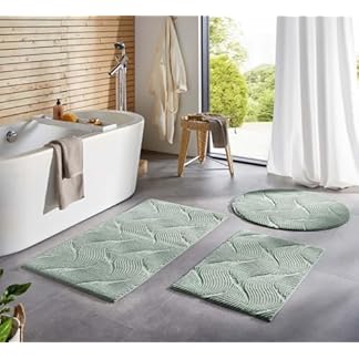 €13,79Produkt kaufenTaracarpet Badematte Homestyle rutschfest waschbar Badezimmerteppich Bad-Vorleger, WC Deko, Duschvorleger für Dusche und Badewannen sehr weich und als Set kombinierbar Grün Dühne 120×170 cm