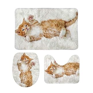 3-teiliges Badezimmerteppich-Set mit niedlicher Katze, Maine Coon Kitty, rutschfeste Konturmatte + WC-Deckelbezug…
