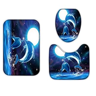 RLYXGS Universum Badezimmermatten und Teppiche 3-Teiligs Set Delfin Flanell Memory Foam rutschfeste Matten und Badteppich,Ozean Toilettendeckelabdeckung,Badvorleger Badgarnitur WC Vorleger