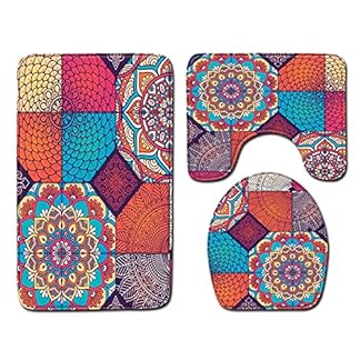 Hongwenstore Badematten Set,Schmetterlingsblumen Toilettenteppich Set 3-teilig rutschfeste und weiche Badematten…