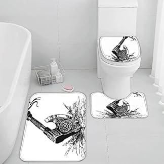 Badematten Set 3D Wikinger Mythos absorbierend 3-teiliges Flanell-Badezimmerteppich-Set maschinenwaschbare weich…