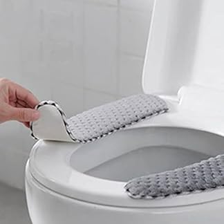 Hilai WC-Sitzbezug,Toilettensitzbezug, WC-Sitz-Cover-Pads, Dicke warme Selbstklebende Toilettensitzkissen für den Winter tragbare waschbare und Wiederverwendbare Kissen-Deckelabdeckungen 1Pair grau