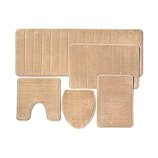 Badezimmer-Teppich, aus Memory-Schaum mit rutschfester Unterseite, 5 Stück beige