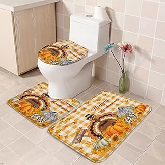 €300,12Produkt kaufenThanksgiving 3-teiliges Badezimmerteppich-Set Harvest Farm Turkey Pumpkin Sunflower Yellow Buffalo Plaid Strapazierfähiges weiches Badematten-Set mit Konturteppich Toilettendeckelbezug for Badewanne,