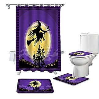€30,87Produkt kaufenIndoor Poormat, 4 Stück Duschvorhang mit Bad Teppichen Set Halloween Vollmond-Hexe, die ein Besen, wasserdichte Vorhänge und rutschfesten Boden Fußmatte Lila Gingham Spukschloss Toilettendeckelbezug-B