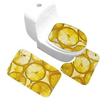€22,18Produkt kaufen3 Teilig Badematte Set Gelbe Zitrone 3D Badematten Set rutschfest, Badezimmerteppich,U-förmiger WC-Vorleger,WC…