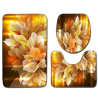 €22,18Produkt kaufen3 Teilig Badematte Set goldene Blume 3D Badematten Set rutschfest, Badezimmerteppich,U-förmiger WC-Vorleger,WC…