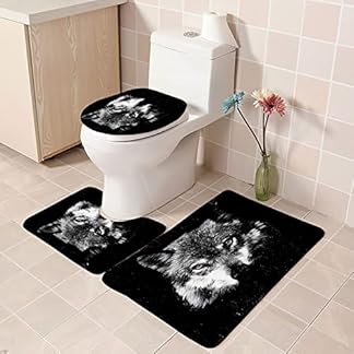€22,18Produkt kaufen3 Teilig Badematte Set Schwarzer Wolf 17 3D Badematten Set rutschfest, Badezimmerteppich,U-förmiger WC-Vorleger,WC…