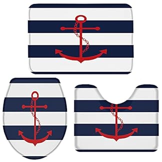 €113,04Produkt kaufenQueenker 3-teiliges Badematten-Set, WC-Deckelbezug, roter Anker, marineblau und weiß gestreifter Druck, Konturteppich, WC-Vorleger rutschfeste Badezimmer-Fußmatte, 45,7 x 76,2 cm + 35,7 38,7