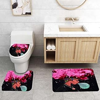 €26,67Produkt kaufen3-teilig Badematten Set, 3D Digitaldruck Mädchen Badteppich Sets rutschfest Badvorleger Schwarz Waschbar U-Förmiger…