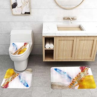 €27,89Produkt kaufen3-teilig Badematten Set, 3D Digitaldruck Feder Badteppich Sets rutschfest Badvorleger Farbe Waschbar U-Förmiger…