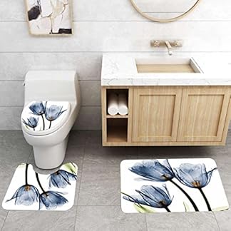 €26,67Produkt kaufen3-teilig Badematten Set, 3D Digitaldruck Blumen Badteppich Sets rutschfest Badvorleger Blau Waschbar U-Förmiger…