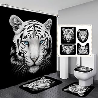 €22,90Produkt kaufenCreyoo 4 Teile/Satz Tiger duschvorhang, Badezimmer-Sets mit Duschvorhang und Teppichen, rutschfeste Badezimmer Teppiche Badematten WC-Teppich, Tierdruck wasserabweisend 70.8 x 70.8 Zoll