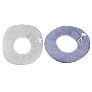 VOCOSTE 2 Stück dehnbarer, dicker WC-Sitzbezug mit Griff, Badezimmer-Wärmer, weiches WC-Sitzkissen, waschbar, wiederverwendbar, hellgrau, blau, grau