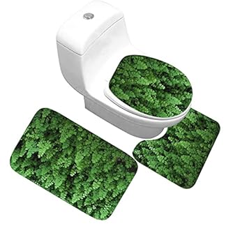 Badematten Set,Badematten Teppich-Set 3-Teilig Grüne Blätter Pflanze 3D-Druck rutschfeste Badematten Weiche Mikrofaser…