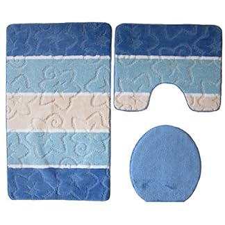 €32,00Produkt kaufenOrion Badgarnitur 3 TLG. Set 50×80 cm Mehrfarbig gestreift, WC Vorleger mit Ausschnitt für Stand-WC (blau hellblau Creme)