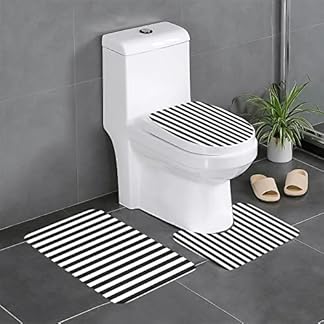 €61,55Produkt kaufenDEPILA Badezimmer 3-teiliges Badezimmerteppich-Set Schwarz-Weiß-Streifendruck 3-teiliges Badezimmerteppich-Set Badematte + Kontur + Toilettendeckelbezug Badezimmer-Antirutsch-Pad Sets