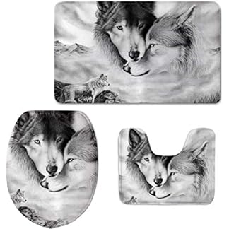 €17,00Produkt kaufenHNYF badematten Set Wolf 3D Drucken badezimmermatte rutschfest badezimmerteppich Set 3 teilig für Küche Dusche und…