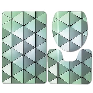 €31,58Produkt kaufenBad Teppiche Set Grünes Graues Dreieck Badezimmerteppich Waschbar WC Vorleger mit Ausschnitt und WC Deckelbezug 3 Teilig Badematte rutschfest Toilettensitzbezug Badgarnitur 50×80 cm