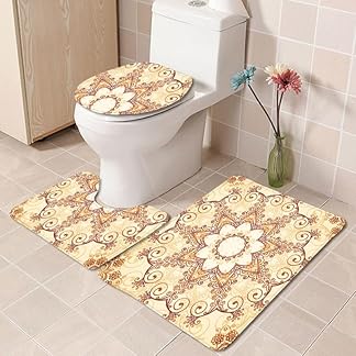 €31,58Produkt kaufenBad Teppiche Set Mandala Beige Orange Badezimmerteppich Waschbar WC Vorleger mit Ausschnitt und WC Deckelbezug 3 Teilig Badematte rutschfest Toilettensitzbezug Badgarnitur 50×80 cm