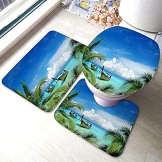 €29,88Produkt kaufenBadezimmerteppich-Set, 3-teilig, Palmen und Fischerboot-Paradiesbild und exotischer Hawaii-Strand, waschbare Badeteppiche, rutschfest, mit Rückenpolster, Konturteppich und Toilettendeckelbezug