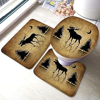 €29,88Produkt kaufenBadezimmerteppich-Set, 3-teilig, Vintage-Tier, rustikal, Elch, Elch, Hirsch, Wald, Kiefer, Mond, Design, waschbare Badteppiche, rutschfest, mit Rückenpolster, Konturteppich und Toilettendeckelbezug