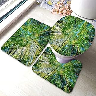 €29,88Produkt kaufenBadezimmerteppich-Set, 3-teilig, Wald, Frühling, Sommer, Sonne scheint durch das Blätterdach hoher Bäume, waschbare Badteppiche, rutschfest, mit Rückenpolster, Konturteppich und Toilettendeckelbezug