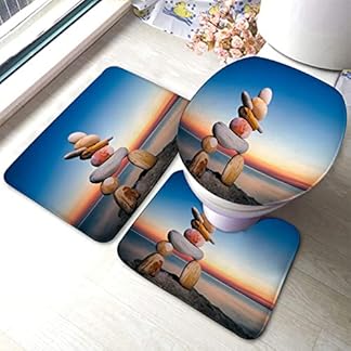 €29,88Produkt kaufenBadezimmerteppich-Set, 3-teilig, Figur von Inukshuk an der Meeresküste gegen den Sonnenuntergang, waschbarer Badeteppich, rutschfest, mit Rückenpolster, Konturteppich und Toilettendeckelbezug