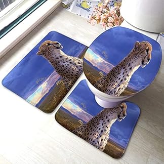 Badezimmerteppich-Set, 3-teilig, Gepardengesicht, waschbare Badeteppiche, rutschfest, mit Rückenpolster, Konturteppich und Toilettendeckelbezug