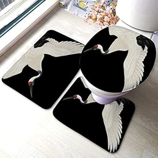 €29,88Produkt kaufenBadezimmerteppich-Set, 3-teilig, japanischer Kranich fliegt auf schwarzem Hintergrund, waschbarer Badvorleger, rutschfest, mit Rückenpolster, Konturteppich und Toilettendeckelbezug