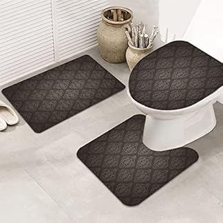 Badematte Badvorleger Set 3-tlg. Teppich, Muster Grau Dunkel Floral Vintage Abstrakt Rokoko Damast Antik Barock Schwarz…