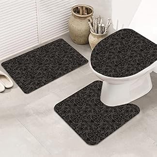 €15,00Produkt kaufenBadematte Badvorleger Set 3-tlg. Teppich, Teils-grauer schwarzer Damast-Vintages Blumenmuster-dekoratives barockes dunkl…