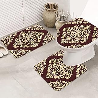 €15,00Produkt kaufenBadematte Badvorleger Set 3-tlg. Teppich, Schnörkel arabisches Blumenmuster Rotgold Drapierung Damast Barock Blumenmuste…