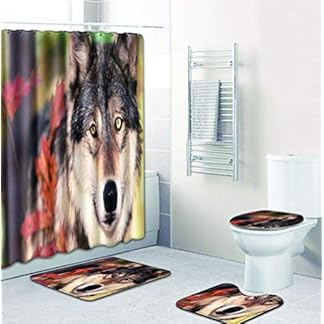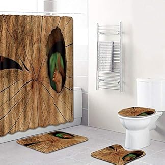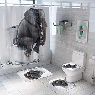 N / A 4 Stück Badematten Set rutschfest Ständer Unterstützung,3D HD Duschvorhang mit Animal-Print und Rutschfester…
