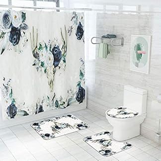 €40,99Produkt kaufenN / A 4 Stück Badematten Set rutschfest Ständer Unterstützung,Home Decoration Elchdruck Duschvorhang Anti-Rutsch-Bad…