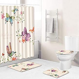 €42,99Produkt kaufenN / A Badematte Antirutsch Set 4 Teilig,Butterfly Series Wasserdichter Duschvorhang Rutschfester Badezimmerteppich…