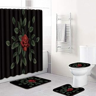 €40,99Produkt kaufenN / A Badematte Antirutsch Set 4 Teilig,Schöner Duschvorhang mit Rosendruck, Rutschfester Badezimmerteppich-Teppich…