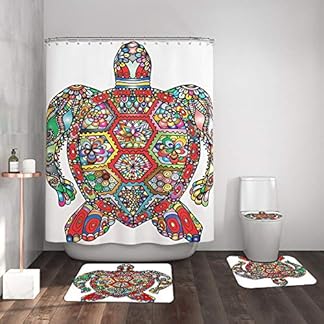 €41,99Produkt kaufenN / A Badematte Antirutsch Set 4 Teilig,Persönlichkeit Exotischer Druck Duschvorhang Rutschfester Badezimmerteppich…