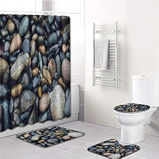 €42,99Produkt kaufenN / A Badematte Antirutsch Set 4 Teilig,Steindruck Wasserdichter Duschvorhang Rutschfester Badezimmerteppich…