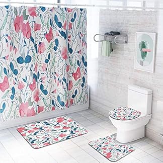 €40,99Produkt kaufenN / A Badematte Antirutsch Set 4 Teilig,Trendy Duschvorhang mit Blumendruck, Rutschfester Badezimmerteppich-Teppich…