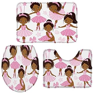 3-teiliges Badematten-Set, WC-Deckelbezug, niedliches Mädchen, Ballerina-Tänzerin, Gymnastikmuster, Konturteppich, WC…