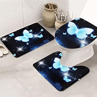 €34,13Produkt kaufenRUGQOZF Blauer Schmetterling bedruckt 3-teiliges Badezimmerteppich-Set Flanell rutschfeste Badematte saugfähig…