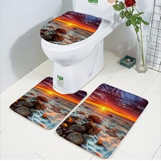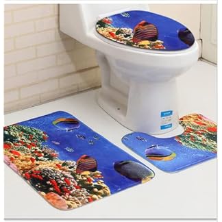 Badematten Set 3 teilig,Toilettenmatte Set,3er Badgarnitur Badezimmer Matte Set Dusch Bade Matte Vorleger Teppich 3D…