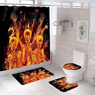 €33,24Produkt kaufenTOENIO 4-teiliges Halloween-Duschvorhang-Set mit 12 Haken, Wasserdichter Badewannenvorhang mit U-Teppich, Toilettendeckelbezug, Badematte, 70 x 70 Zoll Horror Badezimmer Vorhänge Dekoration,E