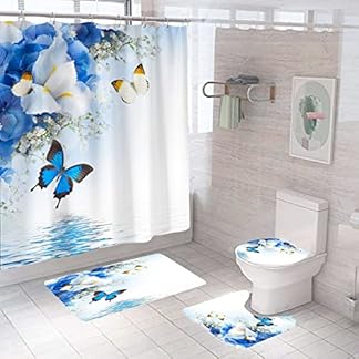 €32,82Produkt kaufenTOENIO 4 Stück Schmetterlings-Duschvorhang-Sets mit 12 Haken, 70X70 Zoll Badezimmervorhänge mit U-Teppich, Toilettendeckelbezug, Badematte, Waschbarer Vorhang für Badezimmerdekoration,C