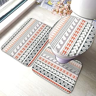 UBINYSS Badematte + Konturmatte + Toilettendeckelbezug, Abstraktes geometrisches Muster 3 Stück Badematten Set, mit rutschfester Klebeunterseite